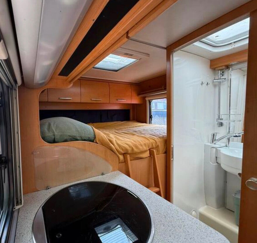 De compacte indeling met vastbed, met daarnaast douche / toilet ruimte, keuken en gezellige zithoek met draaibare pilotenstoelen maken dat u zich zult thuis voelen. Onder het bed een XL bergruimte, van buiten bereikbaar middels twee deuren. Door het lage gewicht en beperkte afmetingen, in combinatie met de krachtige 125pk motor wordt dit uw comfortabele reisgenoot!