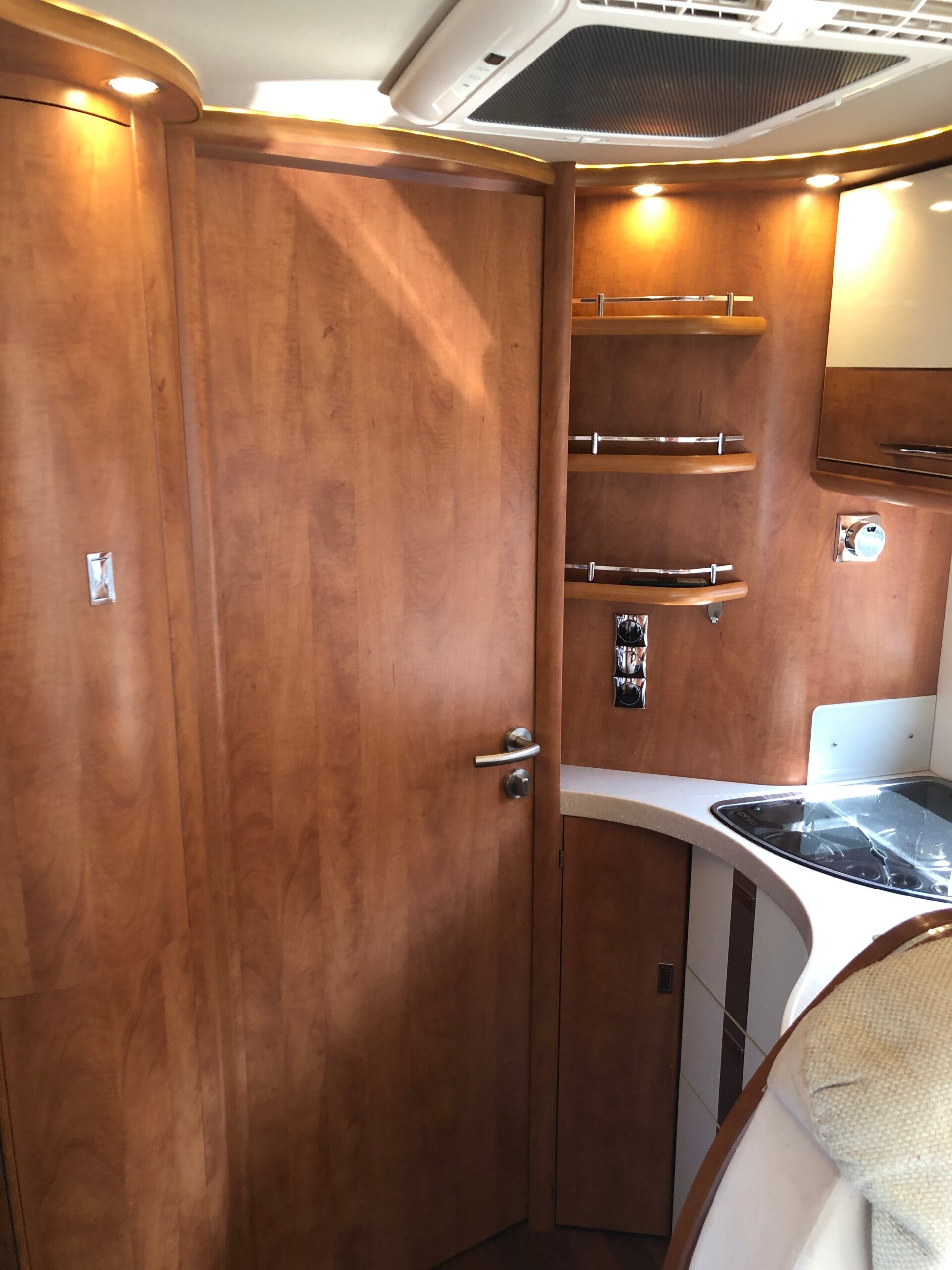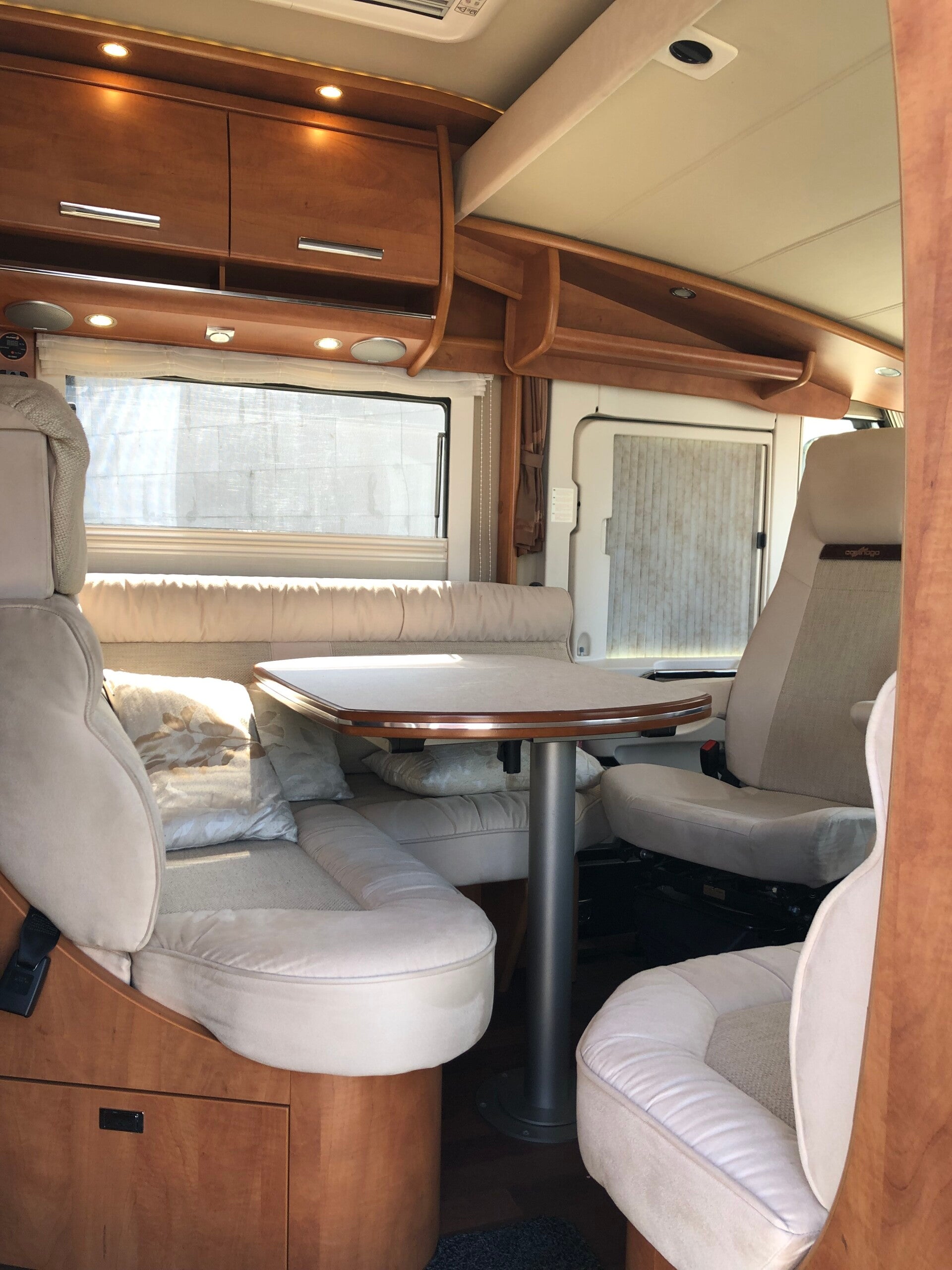Achterin de camper een ruim 2 pers Queensbed / centraal bed, met veel bergruimte in de directe ongevong, midden in de doucbe / toilet ruimte, van elkaar gescheiden l+r, l-keuken center met veel bergruimte, 3 pits gasstel en een grote koel vries combinatie met daarboven een bakoven. In de gezellige zithoek met tal van mogelijkheden, kun je met 5-6 personen ruik vertoeven. De tafel kan eventueel omgebouwd worden tot een 5e slaapplek. Door de draaibare pilotenstoelen bij de zithoek te draaien ontstaat er een heerlijke gezellige leefhoek. Boven de cabine stoelen bevindt zich een riant 2 persoons hefbed. Deze camper is ideaal voor mensen die lang onderweg zijn, van off grid staan houden, of de ideale combinatie reis / verblijfs wagen zoeken. Ook ideaal voor Opa’s en Oma’s die de camper willen delen met bijv kinderen en kleinkinderen.